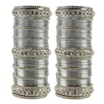 الأخضر-الذهبية-الفضية الهندية أساور تزين مع أحجار الراين ، زوج واحد من d=6.2 سم و زوج واحد من d=6.4 سم