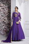 Blue-gray Indian dress / suit, with long sleeves, embellished with embroidery