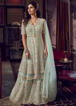 Pistachio Indian dress / suit, 3/4 sleeves, embroidered