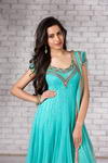 Vestido largo turquesa hasta el suelo con mangas cortas