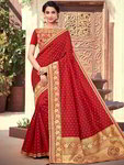 Rouge avec de l'or de mariage indien sari, ornée de broderies