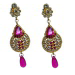 Indiai réz fülbevaló-bells, fedett aranyozott, feketedés, gyöngyök