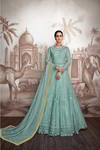 Голубое индийское платье / костюм, с длинными рукавами, украшенное вышивкой