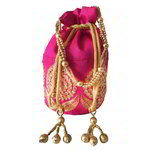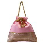 Cor-de-rosa de seda feminina bolsa-bolsa, decorada com bordado