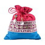 Bolsa azul indiana adornada com lurex e bordados de lantejoulas