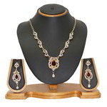 Şeffaf ve bordo yapay elmaslı + küpeli yaldızlı Hint kolye