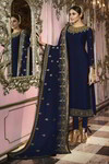 Тёмно-синее индийское платье / костюм, с длинными рукавами, украшенное вышивкой