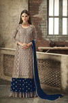 Серое индийское платье / костюм, с рукавами три четверти, украшенное вышивкой