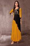 Золотисте довга сукня в підлогу, з довгими рукавами, прикрашене вишивкою