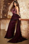 Красиве індійське сарі з атласної жоржета кольору фуксії, прикрашене вишивкою з люрексом